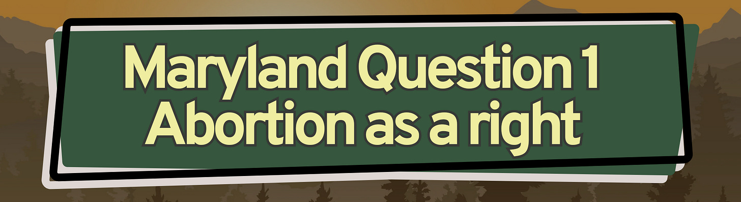 Last, but certainly not least, Maryland.6 I’ll keep this brief, but its worth noting that Maryland is voting on a constitutional amendment to enshrine abortion and other reproductive rights into their state constitutional under Question 1.