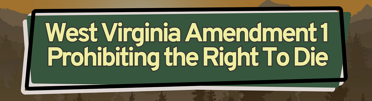West Virginia’s legislature put a constitutional measure on the ballot this year prohibiting a right to die. To be perfectly clear, right to die is already illegal in West Virginia, but this would codify it in the state’s constitution.
