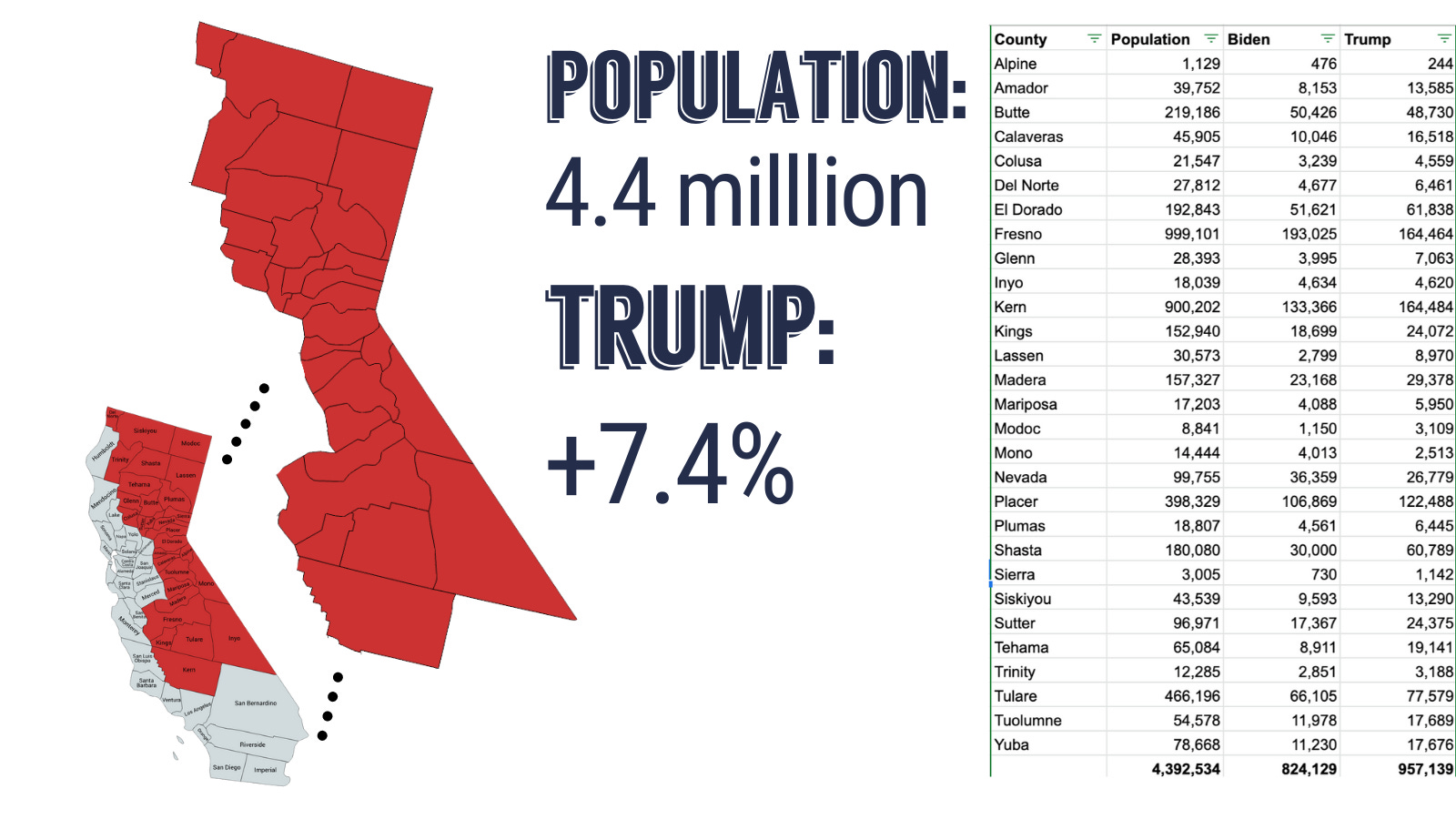 When people hear California, many think of it as a bastion of progressivism devoid of any Republicans whatsoever. That’s the narrative that wins the day on social media and in mainstream media. However, that ignores a significant portion of the state that votes differently. In fact, you could take a large chunk of the western part to create the 26th most populous state in the country that voted for Trump by a 7.4% margin in 2020.