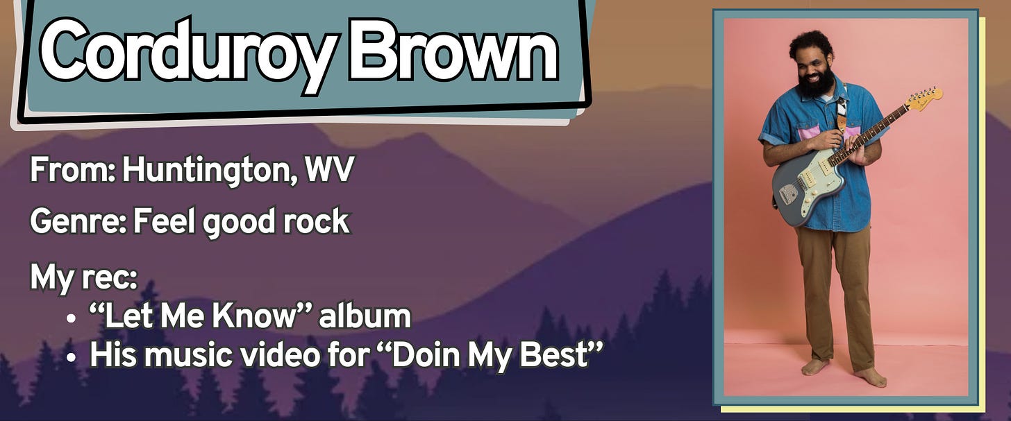 This week, I’m listening to Corduroy Brown — a feel good rocker from Huntington, West Virginia.