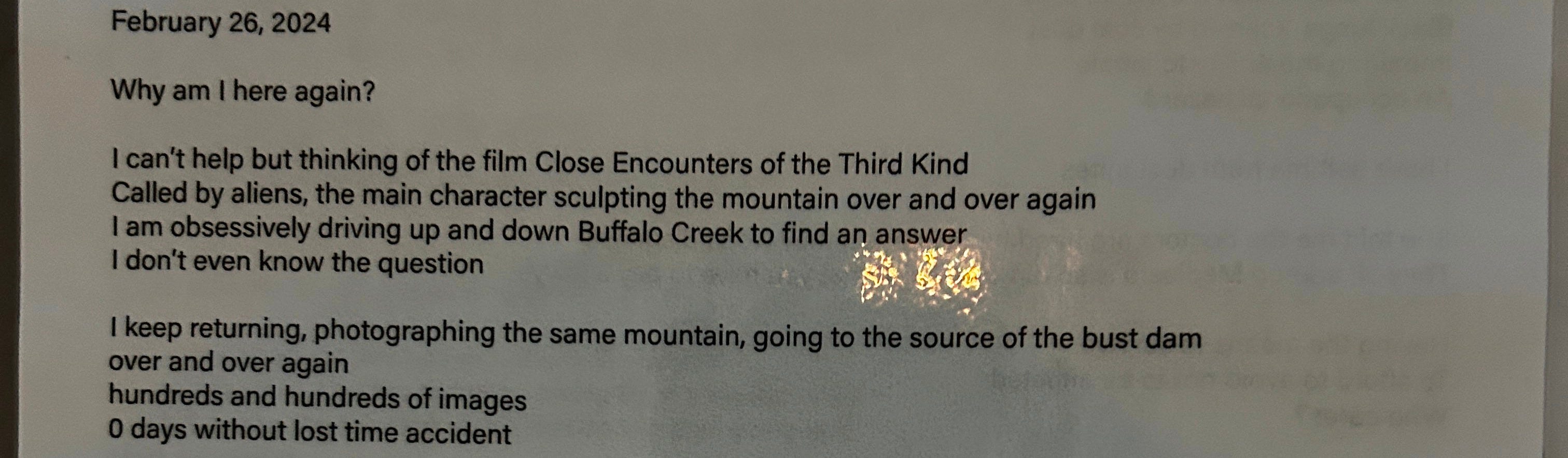 The exhibit doesn’t feature any faces of the people of Buffalo Creek. The above referenced article about the exhibit is quite literally titled “An artist explores community, without the people.” The artist’s entire calling card is that she does not photograph people. There is, of course, artistic value in doing this depending on the context. But telling a story about Appalachia, especially one where you focus almost exclusively on the utter despair and sorrow, necessitates a perspective of people who have lived it — not those perspectives curated by an observer.